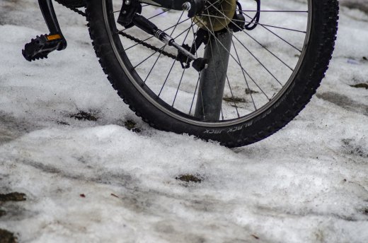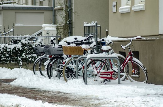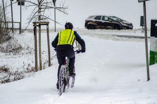 Fahradfahrer im Schnee