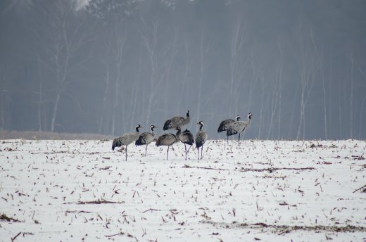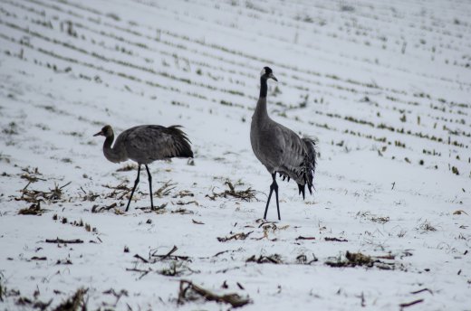 Kranich im Winterfeld