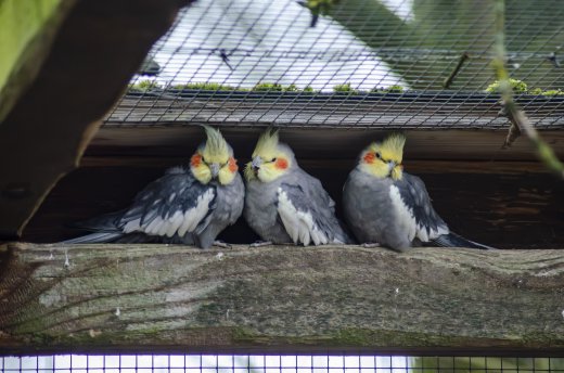 Nymphensittiche im Schutz des Geheges