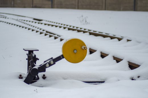 Verschneite Bahnweiche