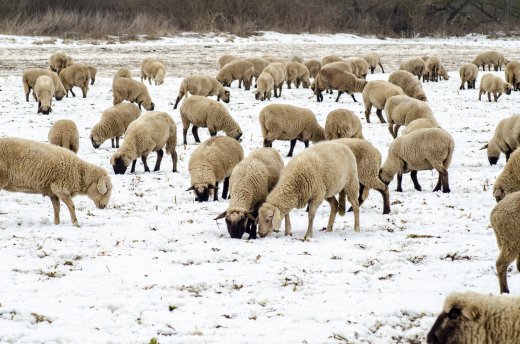 Schafherde trotzt dem Winter