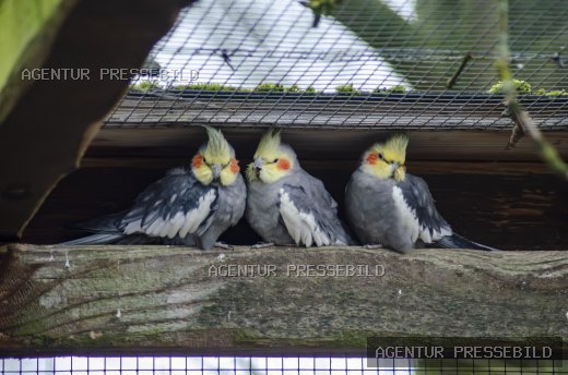 Nymphensittiche im Schutz des Geheges