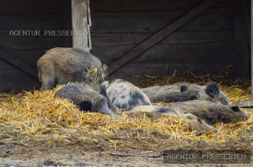 Wildschweine ruhen im Unterstand