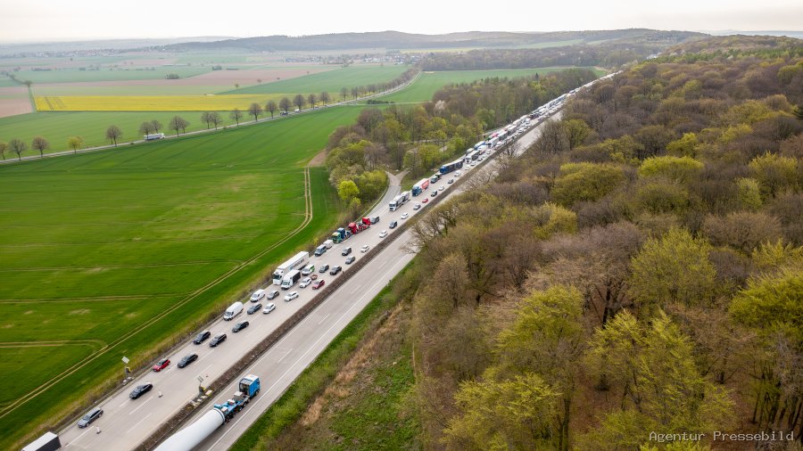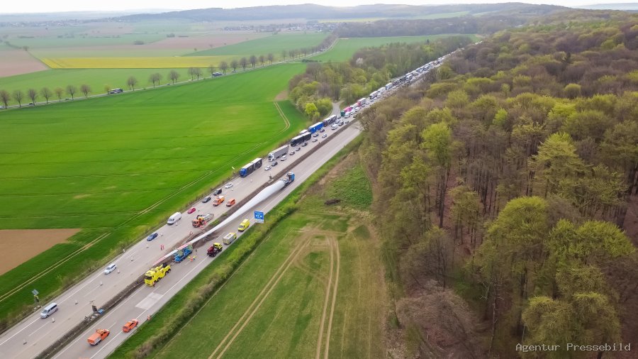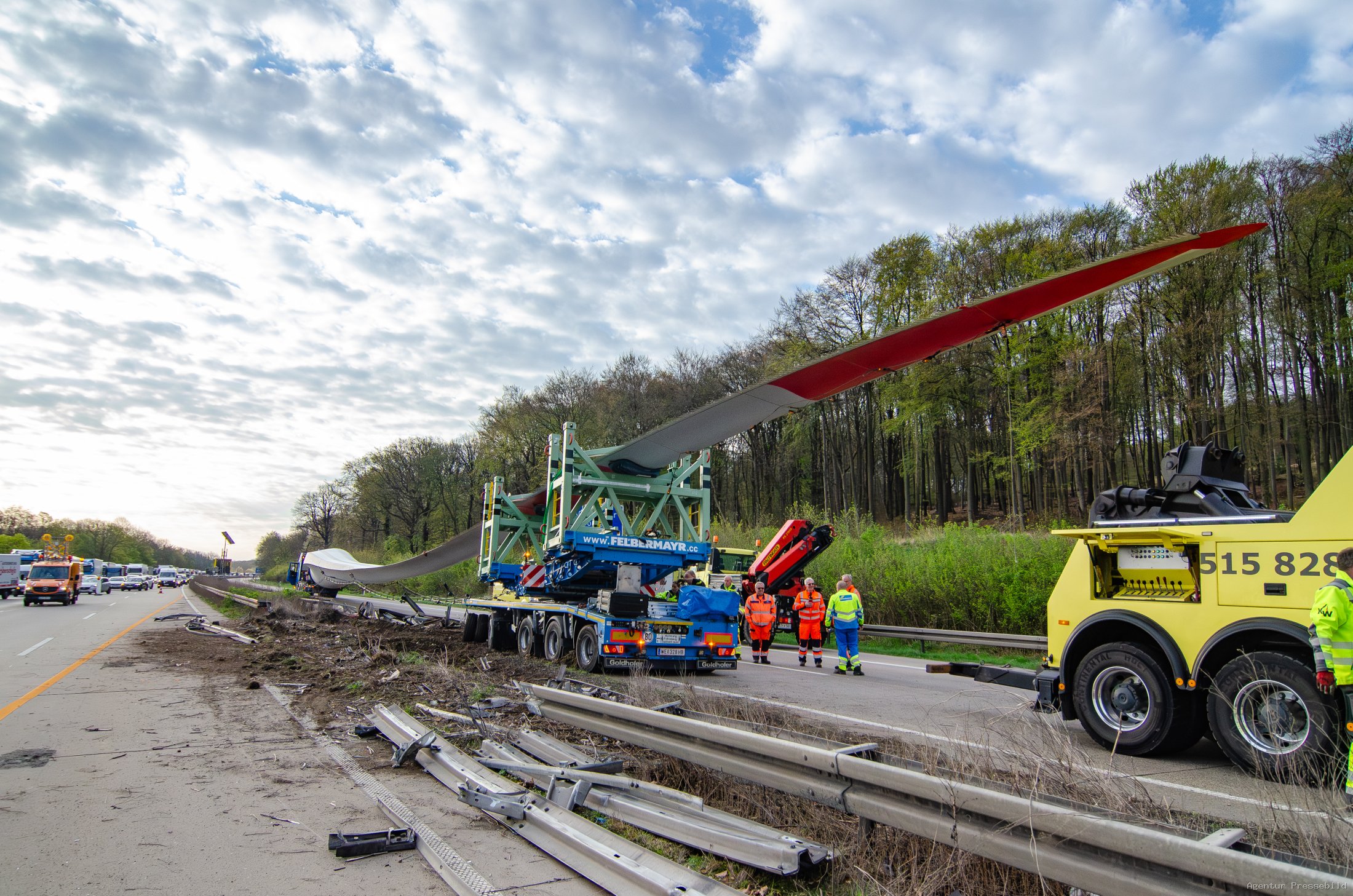 Unfall mit Schwerlasttransport auf der A7: Ein mit einem Windradflügel beladener Lkw prallt in die Mittelschutzplanke und sorgt für eine Vollsperrung in Richtung Kassel. Die Bergung gestaltet sich aufwendig – rund um Hildesheim kommt es zu erheblichen Verkehrsbehinderungen.