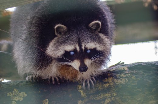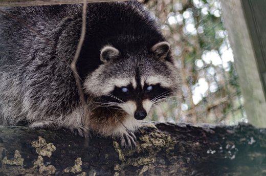 Waschbär blickt aus dem Gehege