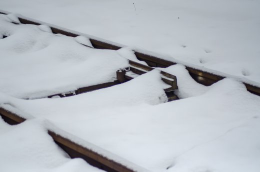 Verschneite Bahnweiche