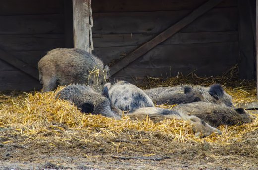 Wildschweine ruhen im Unterstand