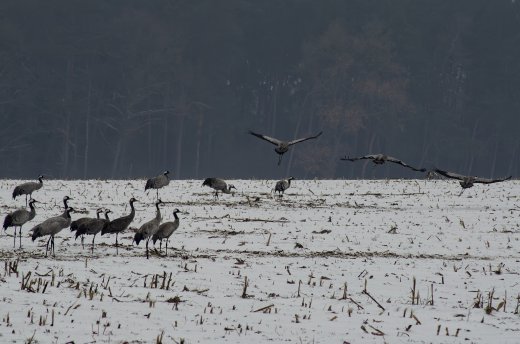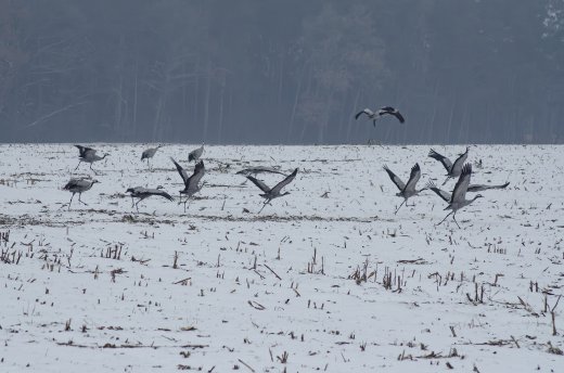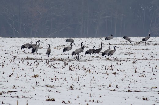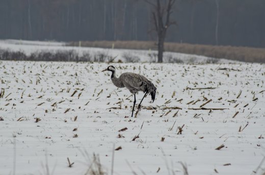 Kranich im Winterfeld